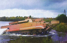 该车取消了车体前部的推土铲,安装加长型通气筒,该车可在3级海浪中行驶,在2级海浪状况下能准确射击,在水上行进时间可持续7个小时。