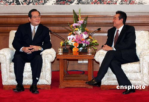 图:中共中央台湾事务办公室主任陈云林二月二十二日在北京钓鱼台会见中国国民党政策会执行长曾永权率领的国民党访问团。