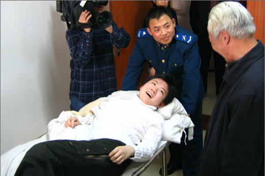 图:在病床上躺了42天后,小晴终于出院了