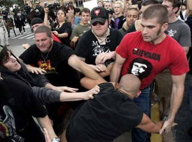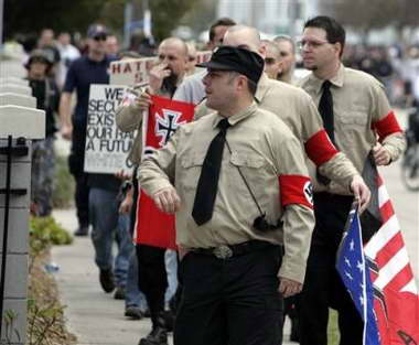 当地时间2月25日, 在当天的游行中,格外引人注目的是大约30名“美国纳粹党”成员,他们身穿标志性纳粹服装,举着纳粹标语牌,上面写着“白人团结起来”等标语以及“控诉”黑人高犯罪率的统计数字。他们沿着一条道路的一侧游行,在市政厅还行了纳粹礼。 在这条道路另一侧,大约100名身着黑衣的抗议者举行了对抗性游行。他们中许多人头戴黑色面具,举着“停止憎恨、停止暴力”和“爱所有人”等反纳粹标语牌,与道路对面的新纳粹分子形成对峙之势。两支队伍相互叫骂,引来奥兰多众多居民在家门前驻足观看。 美联社表示,为阻止暴力活动发生,当局在现场部署了超过300名执法人员,将新纳粹分子和抗议者分隔开来。但这仍然没有阻止双方身体冲突的出现。 随后,据奥兰多警方发言人巴布·琼斯表示,共有17人在这次游行暴力示威中被捕。被捕者面临的指控包括妨害治安、殴打执法人员及佩戴面具。目前尚不清楚是否有人受伤。 由于美国法律对于民众团体建立的限定比较宽松,加之美国极少数白人将吸毒、抢劫等社会问题单纯归咎于有色人种,因此近些年来,以以宣扬种族偏见的新纳粹团体在美国呈上升势头,并且不断通过各种等手段宣扬自己的主张。去年10月15日,美国俄亥俄州托莱多市的一场新纳粹游行就引发了一场骚乱,造成商店被抢劫和焚毁,警方也遭到袭击。 |