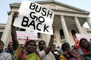 布什抵印开始访问 遭10万穆斯林信徒抗议(图)
