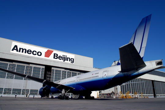 3月2日清晨,美国联合航空公司编号为N785UA的波音777宽体客机徐徐拖入北京飞机维修工程有限公司四机位。