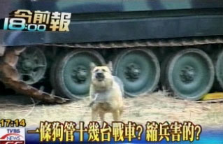 | 台湾的军方实施精实案,军人数目逐年锐减,但是如果裁减到连战车都派不出士兵看管的话,问题就相当严重。金门某个部队,不知道是没兵力还是表现散漫,把数10辆刚演习完的战车停在空地上,没有人看管,现场只有1只军犬对着路人狂吠。