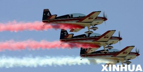 智利空军“猎鹰”特技飞行表演队展示技艺