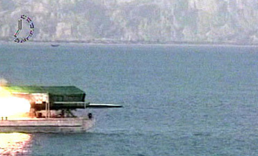 这张拍摄于4月2日的电视照片显示了伊朗军方工作人员正在监视新型高速水下潜射鱼雷的发射情况。新华社/法新 一名伊朗高级官员告诉伊国家电视台说, 据路透社报道,这位高官说:“今天将在波斯湾试射一枚由伊朗革命警卫队专家研制的强力鱼雷。明天,在‘伟大的先知’军事演习中,我们将看到革命警卫队试射更多的导弹。” 据悉,伊朗于2005年2月宣布投产一条大规模鱼雷生产线。 |