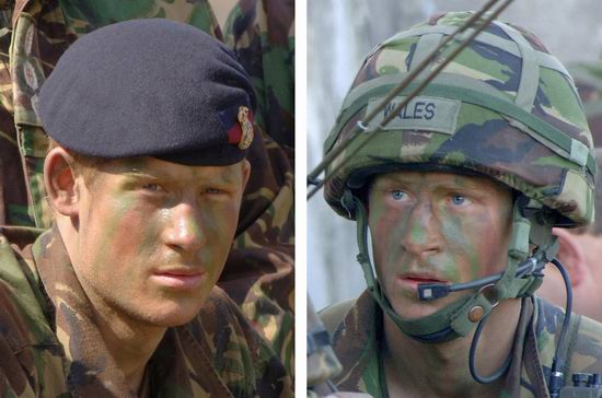 这是英国国防部公布的哈里王子(右)2006年3月在塞浦路斯身着军装参加军训的照片 |