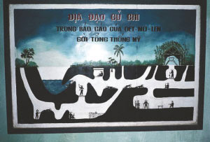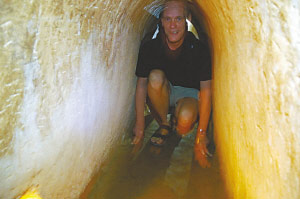 电影《地道站》在中华大地广为播映。在中国, 可承受50吨坦克的碾压 古芝地道位于越南胡志明市西北约70公里处,属于胡志明市郊区的古芝县富美兴乡。这个地区是坚硬的黄色黏土土质,因此修建的地道十分坚固,半个多世纪过去了,至今保存一直完好。 古芝地道于1948年开始修建,当时越南正处于抗法时期,最初不过是将地下的一些单独的掩体连接起来,总长度为17公里。1960年以后,地道系统得到进一步的巩固和发展,总长度达到250公里,在地下分为三层,中间是主道,上下各有一层辅助设施,最深处距离地面8—10米。中间的主道宽约60—70厘米,高约80—90厘米,仅可以容得下一个身材1.6米左右的人弯着腰通过。但是,隔一段就会有一小段较宽处,从对面走过来的两个人可以侧着擦身而过。地道顶部为三角形或拱形,最浅处距地面也有3—4米,可承受50吨坦克的碾压和100公斤炸弹的轰击。 地道内除通道外还设有会议室、饭厅、小礼堂、救治伤员的病房、幼儿园、卫生间、水井和排水系统等。救伤站里面摆着几张手术床,药柜里摆着的军用胶布,仍可看到“中华人民共和国造”的字样。最宽阔的地下室要数司令部会议室了,8米长的会议桌,两旁摆着10来张凳子。 地道里还设计有很多机关,如布满竹尖桩的陷阱,阻挡敌人释放毒气的弯道等。一旦敌人发现洞口进入地道,就可利用这些机关消灭敌人。地道的通道内每隔一段就会有一个挖掘时特意留下的极窄路段,越南游击队员瘦小的身材可以钻得过去,而身材高大的美军士兵要想钻过去可就不那么容易了。 洞口非常隐蔽 记者长期在越南生活,先后去过古芝地道3次,并曾随导游进到地道深处,没料到在地道里面行走竟然那么困难,再加上记者身材比较魁梧,经过一些狭窄路段时甚至有很快就要窒息的感觉,等到从里面钻出地面时身上的衣服全都被汗水湿透了。 第一次参观地道的感觉印象太深刻了。细节之一:开始参观地道时,地道导游人员把包括记者在内的参观者带到一片树林之中,指着一块生长着杂草和落满厚厚一层树叶的十几平方米大的一块地说,洞口就在这里,请大家找找看。大家找了一会儿谁都没有找找。导游拨开了脚前的一层落叶,一个很小很隐蔽的洞口露了出来。 细节之二:记者按照导游的指引来到一个很隐蔽的坑边,看着深深的陷阱中一根根朝天的竹尖桩,后背感觉冒出阵阵凉气,暗想要是不小心掉下去肯定是必死无疑了。 细节之三:在地下厨房里,一位担任当年炊事员角色的地道管理人员正在做饭,灶台上放着一碗煮熟的木薯,游客可以免费品尝。但是,“炊事员”身边还放着一个小篮子,游客自愿放进去一些象征性的“餐费”。至今记者还记得木薯吃到嘴里面面的滋味,很像煮土豆。 和中国地道战有所不同 记者曾到中国的焦庄户村地道参观过。越南的古芝地道与中国的“焦庄户”地道的不同之处在于,中国的“焦庄户”地道有一种规模宏伟的气势,站在地道中感到宽敞,运动自如;而越南的古芝地道小巧玲珑,给人一种精致、紧凑的感觉。两种地道特色不同,但都让人感觉到两个民族所具有的不屈不挠的精神和聪明才智。 古芝地道在上世纪70年代中,越南南北统一后就开辟成为国内革命传统教育基地。上世纪90年代初,开放为越南胡志明市的一个重要旅游景点,每天吸引着数以千计的国内外游客。 |