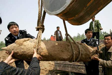 2006年4月24日,西安北郊某工地发现一枚长160厘米,直径30厘米的航空炸弹。炸弹引线还挂在弹头上,只是尾翼受到损坏。据警方介绍,这是西安城区解放以来发现最大的一枚航空炸弹,很可能是日军在侵华战争时投放的航空炸弹。