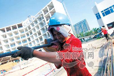 三亚5月的骄阳热辣辣的。三亚凤凰国际机场二期工程工地上,几十名工人顶着烈日工作着,身上的工作服已经湿透,脚边的土地早已被滴下的汗水浸湿。
